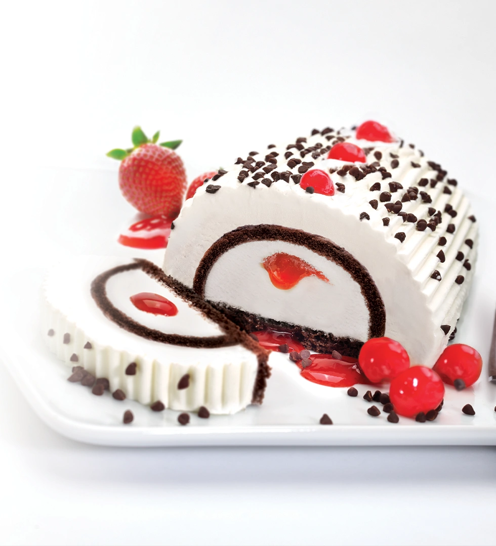 A delicious strawberry-flavoured ice cream with a real strawberry coulis.